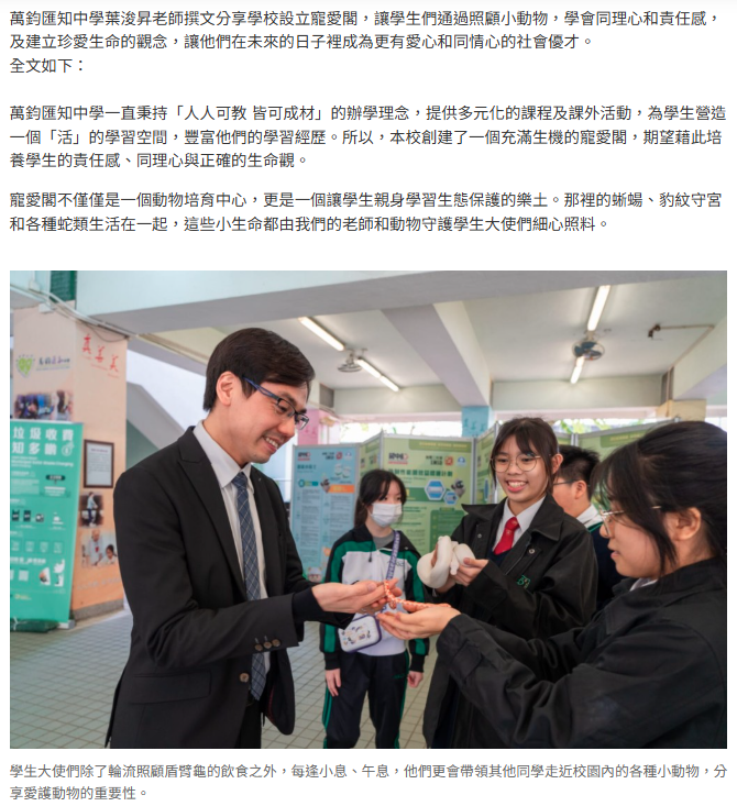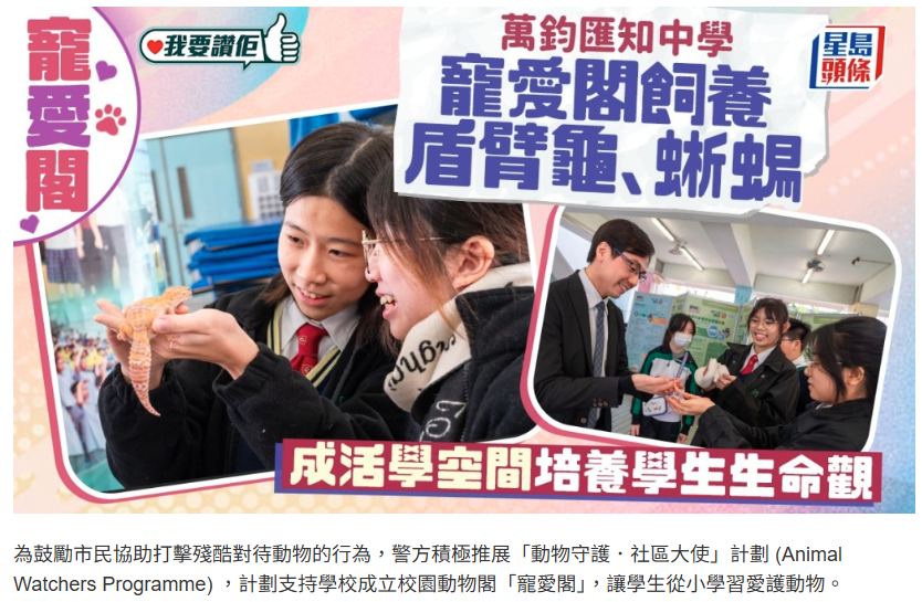 萬鈞匯知中學寵愛閣充滿生機 學生照顧盾臂龜培養生命觀