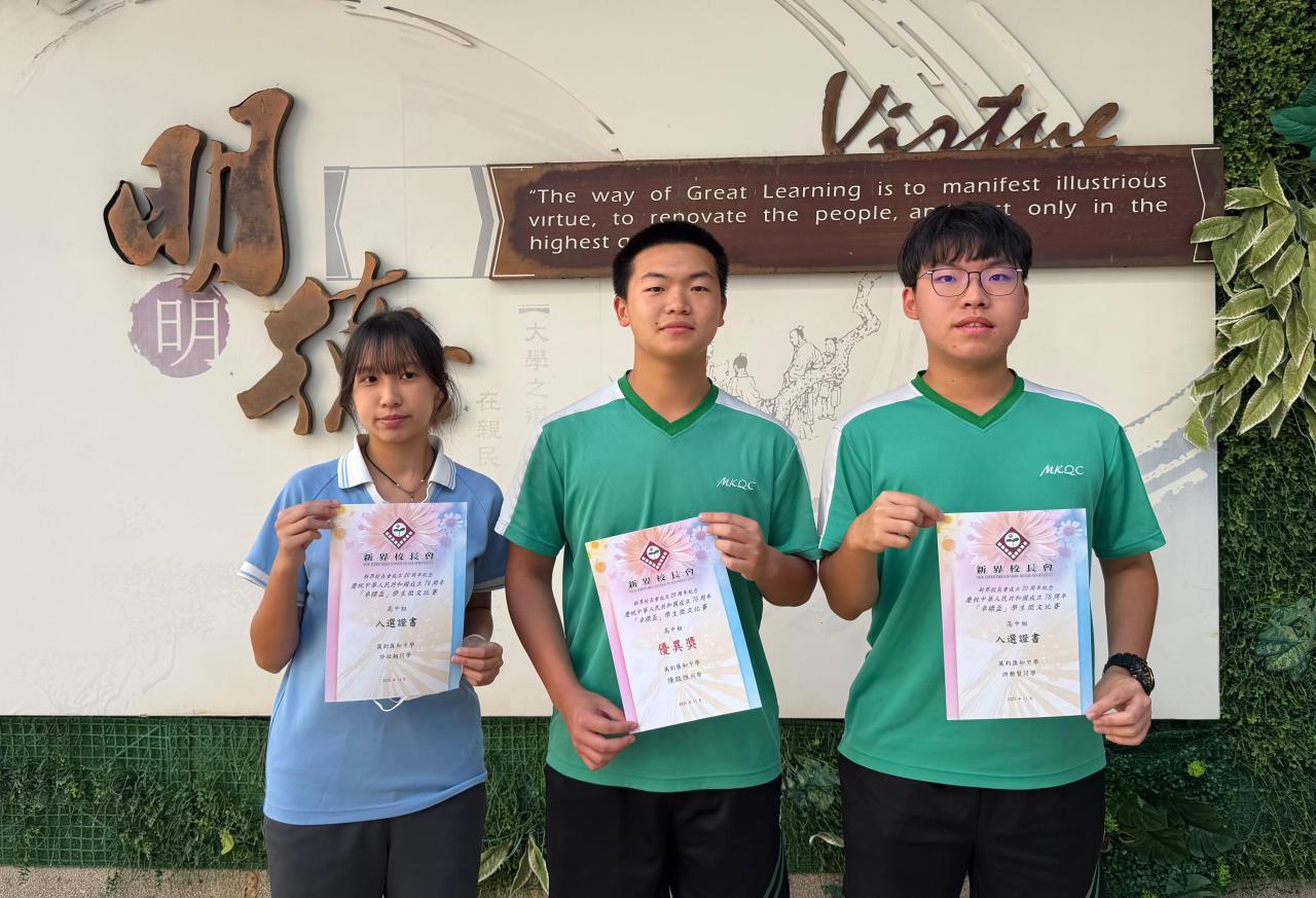 The following students gained different awards in the The 76th Anniversary of the Foundation of the People’s Republic of China “Zhuo Biao Cup” Student Essay Competition organized by New Territories School Heads Association: