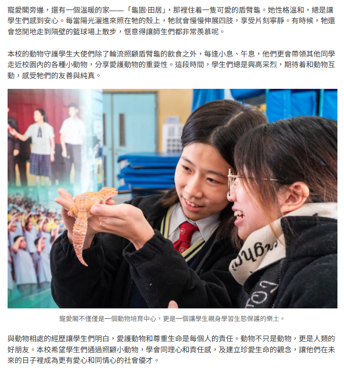 萬鈞匯知中學寵愛閣充滿生機 學生照顧盾臂龜培養生命觀