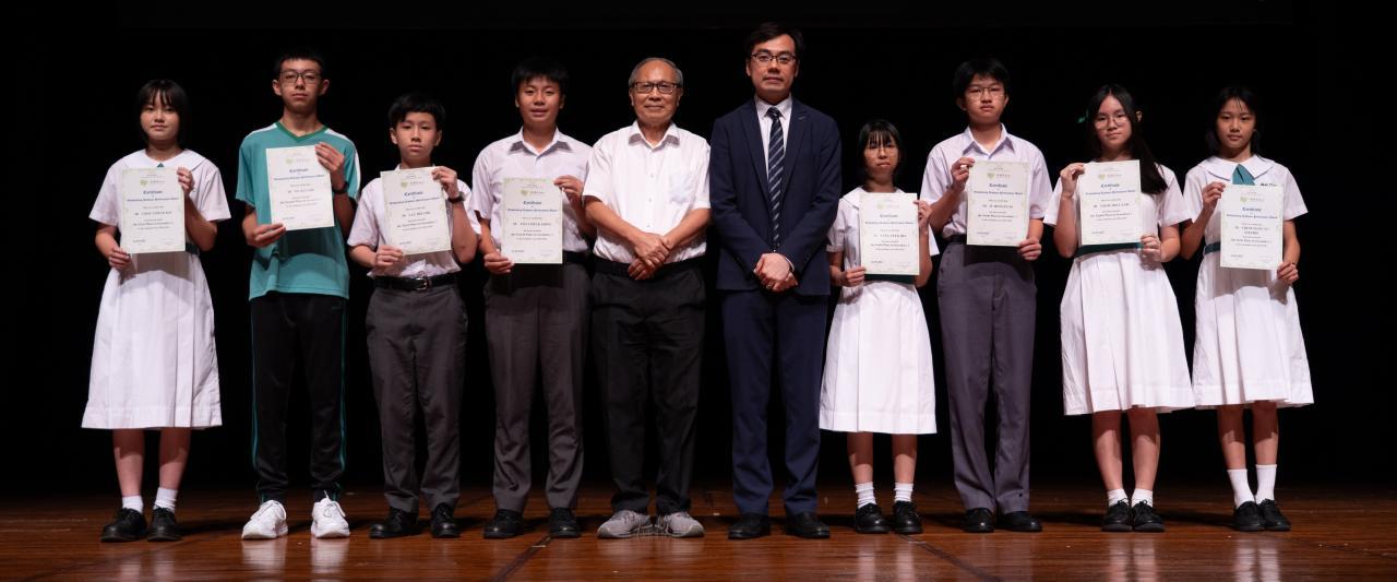 2023-2024年度中一級首十名(全級首三名可獲等同該年全年學費的獎學金,全級考第四至十名可獲等同該年半年學費的獎學金)
