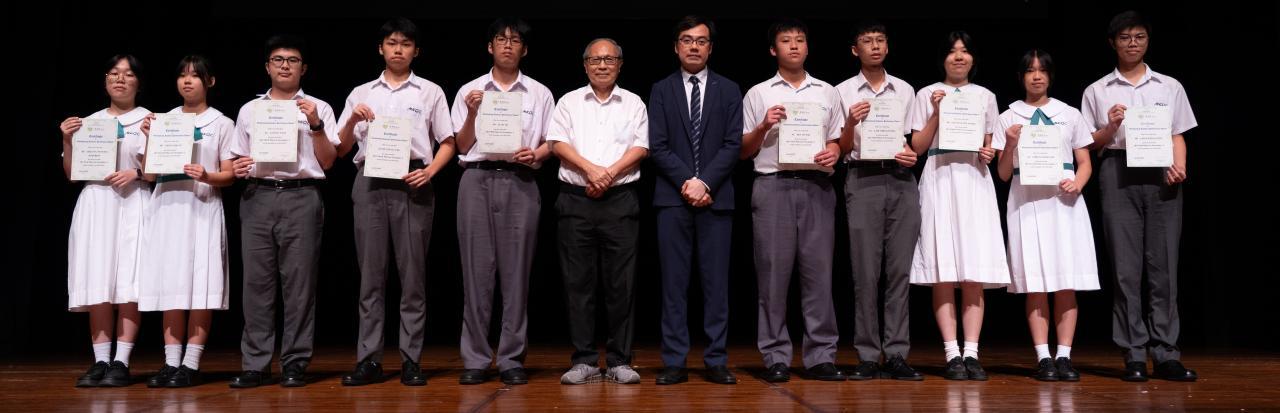 2023-2024年度中三級首十名(全級首三名可獲等同該年全年學費的獎學金,全級考第四至十名可獲等同該年半年學費的獎學金)